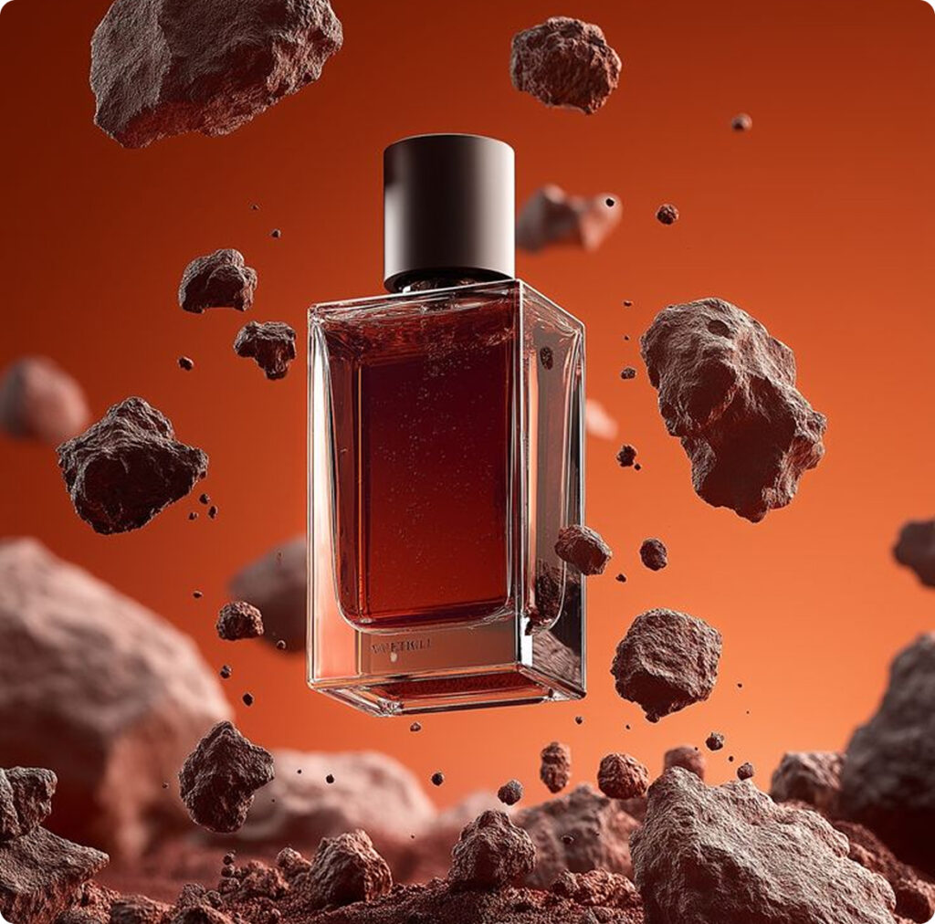 মাঝের ঘ্রাণ (Heart Notes): কিছুক্ষণ পর মূল সুবাসটি প্রকাশ পায়। এখানে গভীর, মাটির মতো প্যাচুলি (Earthy Patchouli)-এর সাথে মিশে যায় খস (Khus/Vetiver)-এর মিষ্টি-ঘাসের মতো এক ইউনিক ঘ্রাণ, যা এক শান্ত ও গভীর পরিবেশ তৈরি করে।