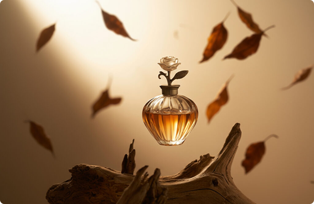 মাঝের ঘ্রাণ (Heart Notes): কিছুক্ষণ পর সুবাসটি আরও আকর্ষণীয় হয়ে ওঠে। এখানে হোয়াইট মাস্ক (White musk) এবং গোলাপের (Rose) কোমল ছোঁয়ার সাথে মিশে যায় হালকা উডি নোটস, যা এক স্নিগ্ধ ও মায়াবী আবেশ তৈরি করে।