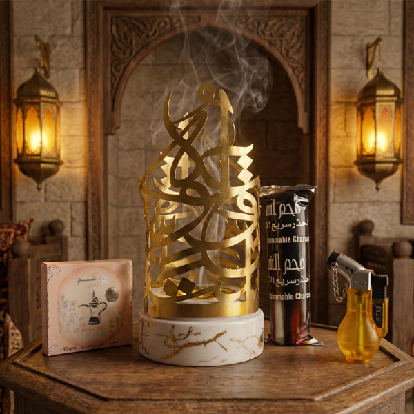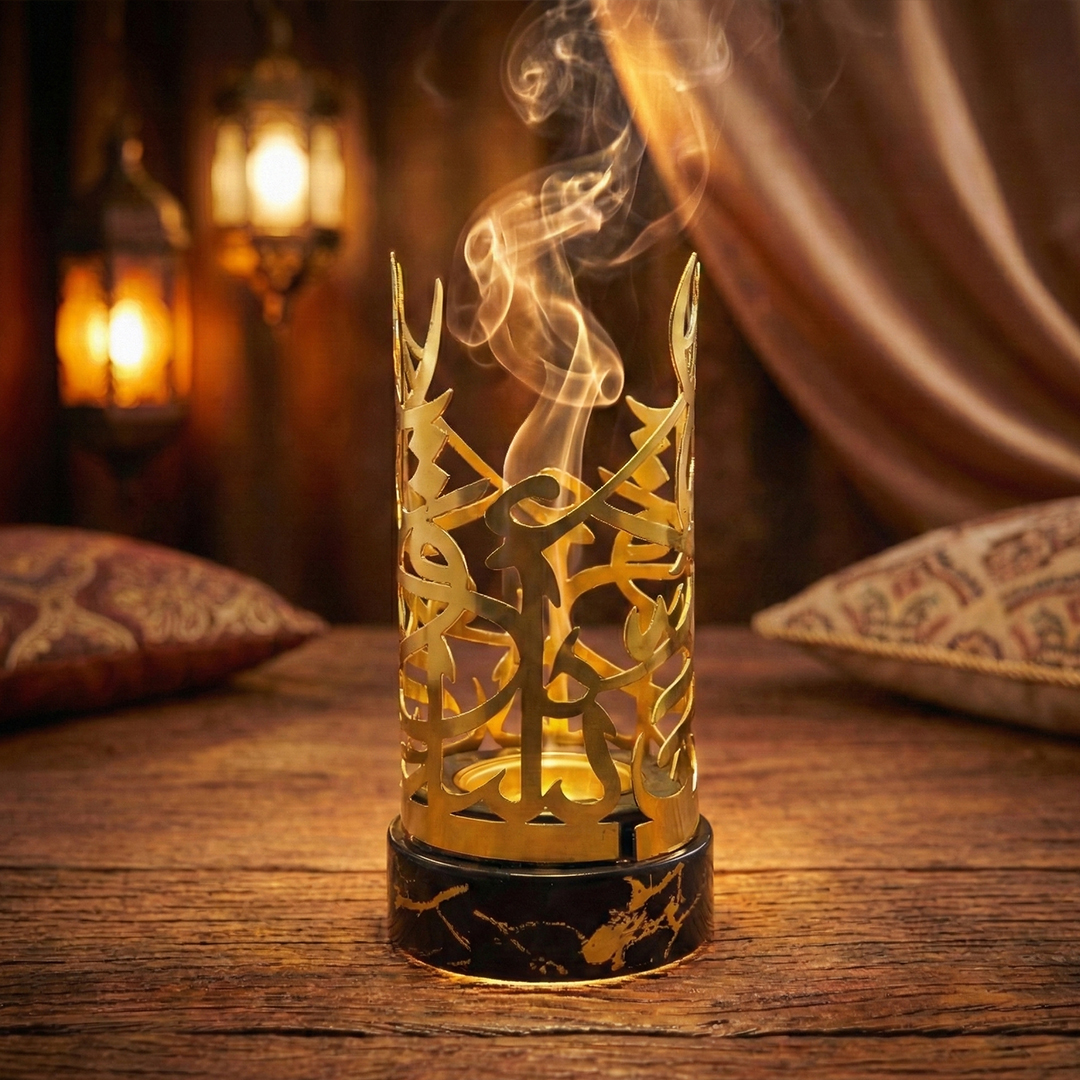 শিল্প ও সুগন্ধির মেলবন্ধন (Fusion of Art & Fragrance) Golden Calligraphy Art Bakhoor Burner