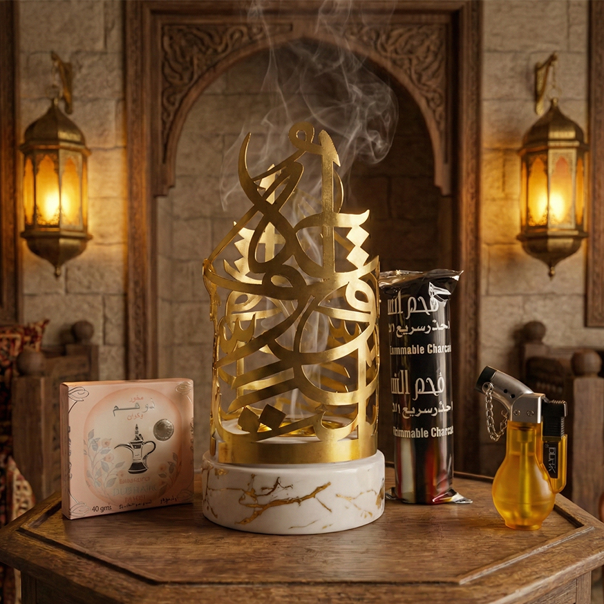 🌟 Golden Calligraphy Art Bakhoor Burner ব্যবহার ও সাশ্রয়: